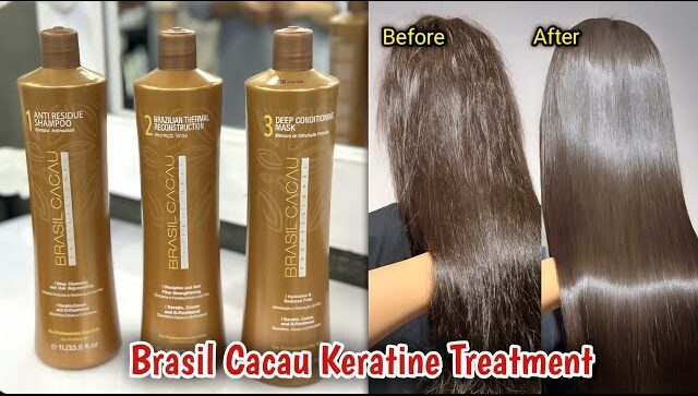 BTR (Brazilian Thermal Reconstruction) from brands like Brasil Cacau uses keratin, cocoa, and D-panthenol with thermal activation to rebuild hair from the inside.